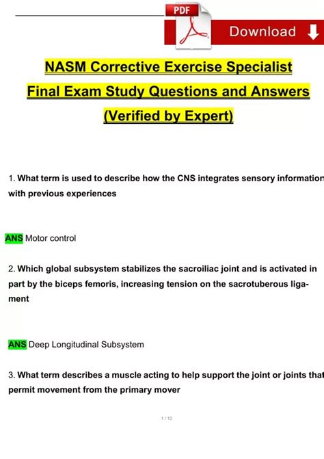 Download online NASM CES EXAM ANSWERS PDF